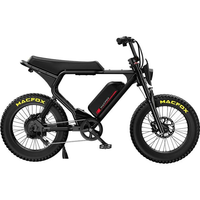 Maximum Range: 42 Miles Top Speed: 28 mph Watts: 750 W Torque: 60 Nm Volts and Amp Hours: 48V 20Ah Wheel Size: 20” Number of Gears: 7 Gearing Type: External Derailleur Weight: 65 lb Suspension: Full Brake Type: Disc: Hydraulic